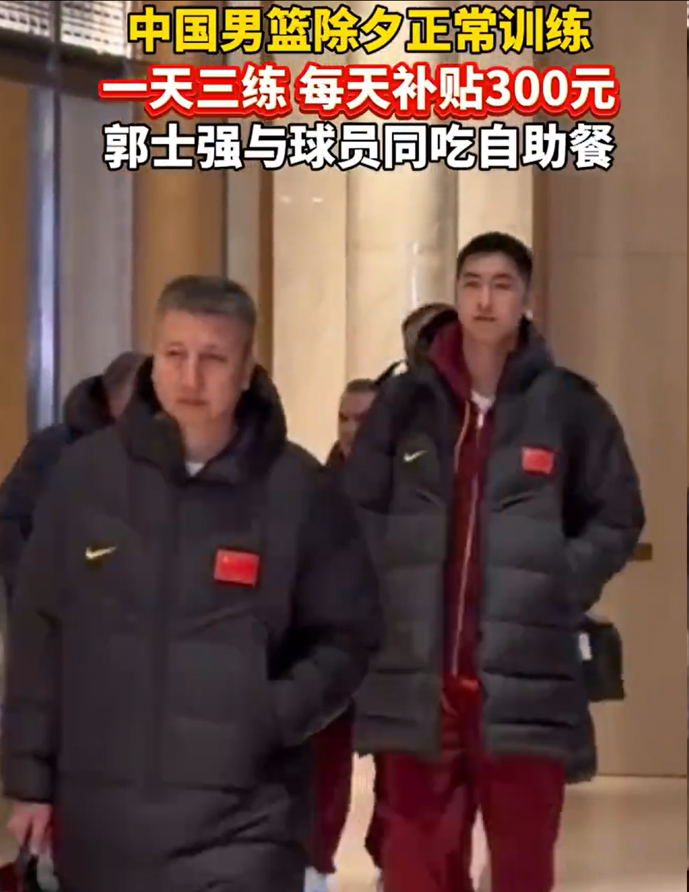而据相关媒体报道,中国男篮甚至除夕还在训练,坚持一天三练,每天只补贴300元,作为主教练郭士强也跟球员同吃自助餐。